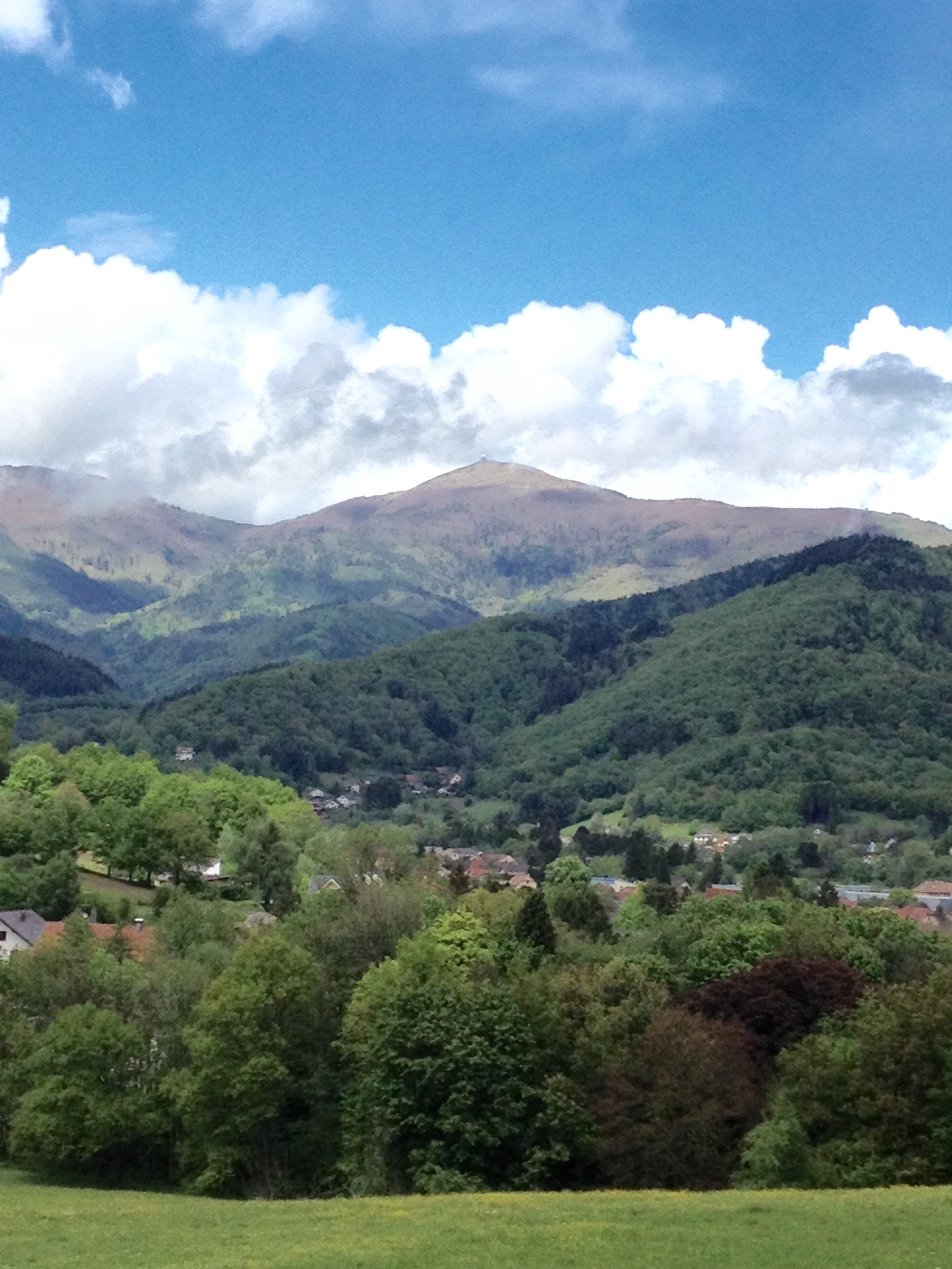The next day we drove to Servance so that we could ride the rest of the Trois Ballons route, which included Ballon d’Alsace and the Grand Ballon (appropriately the highest of the three at 1,504 metres). With other cols dotted here and there, this was a day of constant ascending and descending. The two 15km climbs up the Ballons were just what I needed and it was a great ride. Rain jackets were on and off all day, but there was a lot of sunshine too. We were fortunate not to be out in the thunderstorm that followed. In the car on the way back we witnessed an even greater storm than the previous day. Hardly need for headlights with all the lightning, though the windscreen wipers needed to go at triple speed!