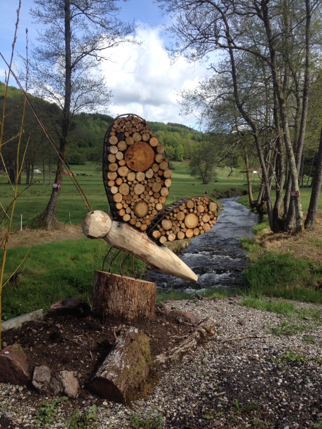 On Saturday we headed straight for PDBF. At the café at Plancher des Mines we got chatting with Veronique, whose brother made this statue at the top. Not my best photo, but is depicts a belle fille – the legend is that this is a place where young ladies threw themselves to their deaths in order to escape unwelcome attention from the advancing Swedish mercenaries. However, it seems to be named after beech trees in the area – belles fahys in the local dialect. Indeed, there is a village called Belfahy in the area and it sits on top of a horrible climb. We know, because we rode it! Still, it got the legs warmed up nicely!