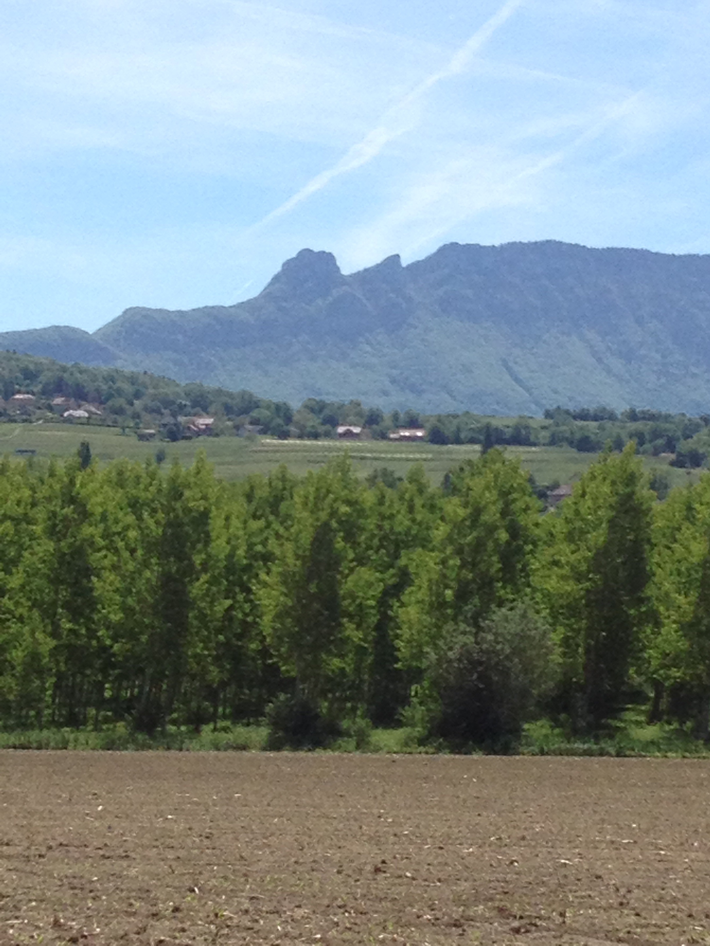 Then it was on to Grand Colombier. Approaching it from this side offers two ways to the top. I plotted the right one on my Garmin, but dithered and ended up going up the climb that the Tour followed last year instead of the tougher one that we will do this year. However, the last 4km are the same regardless of the starting point so that’s OK. Where the two routes meet I did consider going down to Virieux le Petit and climbing again just to make sure I did the proper route (was fairly sure I was wrong by then), but I thought that would be excessive. Plus as it turns out there’s no café at the top here either and I was out of food by now, though with a descent into Seyssel coming up. In any case, having some “unfinished business” with a mountain can be motivational for next time!