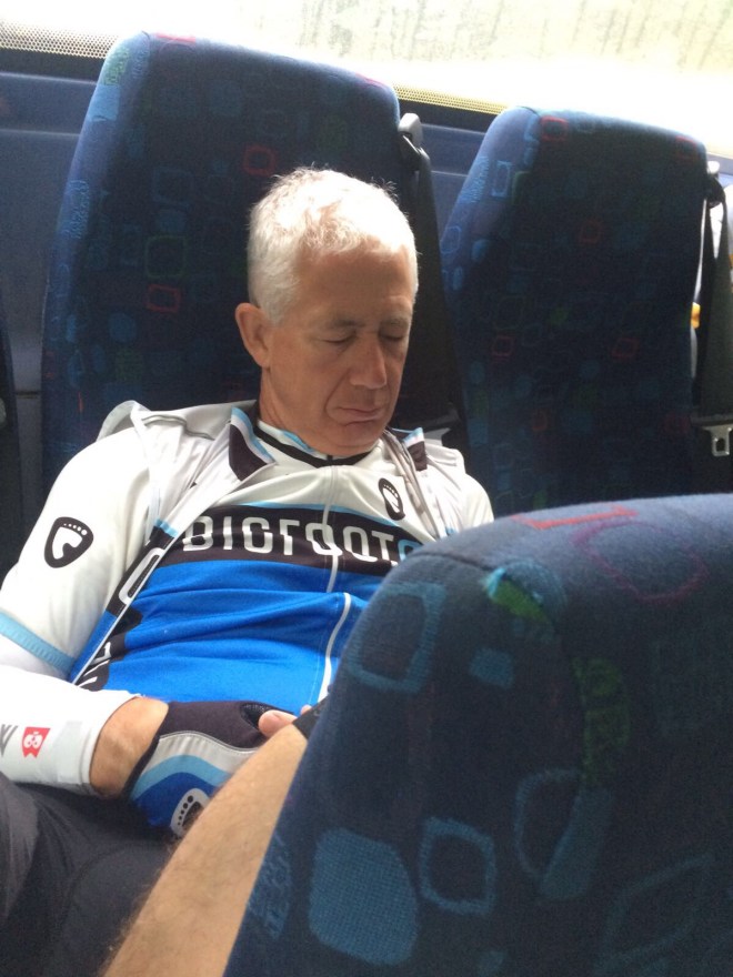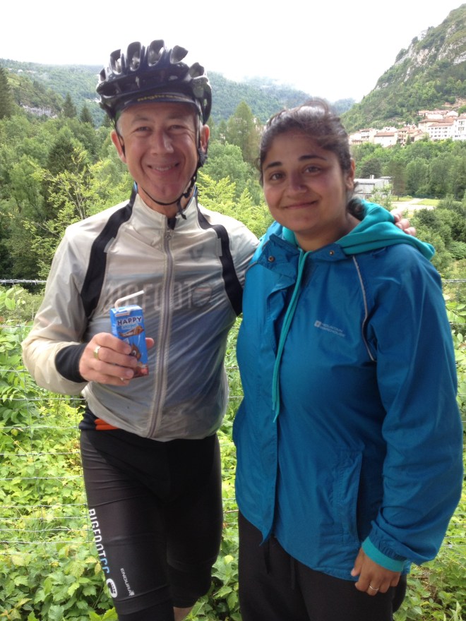 Start 08:00. Transfer 1h00.  Terrain – mountains (approx 4,000 metres climbing – Garmin playing up). Climbs one cat 3 one cat 2 one cat 1. Finish time 19:50. Time in saddle 9h30.