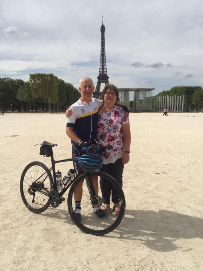 We had lunch after 35km, from which point it was time to make our way to the Eiffel Tower. I loved this part of the ride because I knew that at the end of this section I would see Babs waiting for me. Her arrival made the day and the Tour as a whole something really special and when we met the sense of fulfilment was so much more complete than when I rode this event in 2017. Plenty of sweaty hugs and kisses!