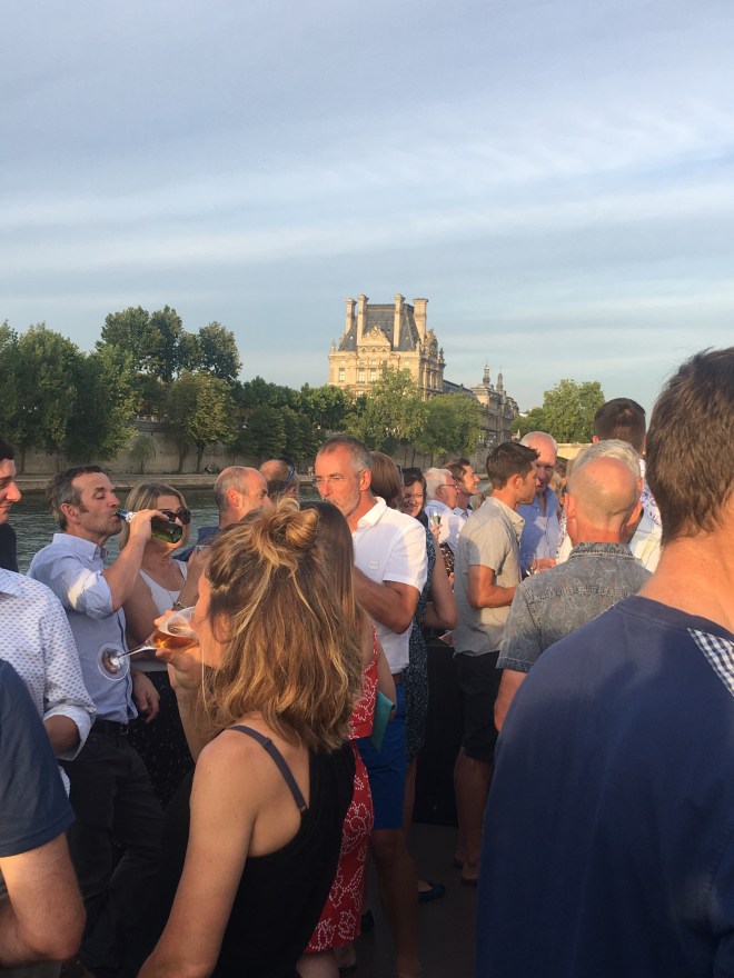 Party time! Two coach loads of riders, friends and family taken to a Bâteaux Mouche for a celebratory dinner on the Seine. Much mutual congratulation in evidence, but I think we’ve earned the right to do that.