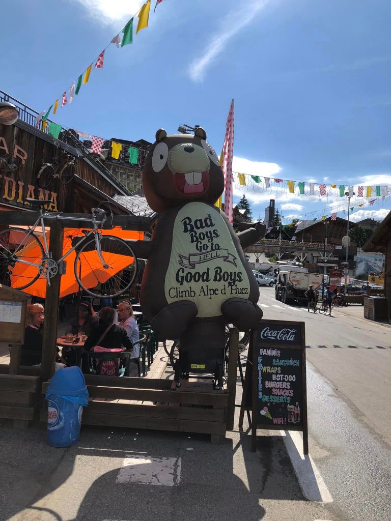 Today was a rest day. Well OK, so it involved riding to the top of Alpe d’Huez for coffee, but that only meant riding a short distance (5 of the 21 bends) to the village and back.