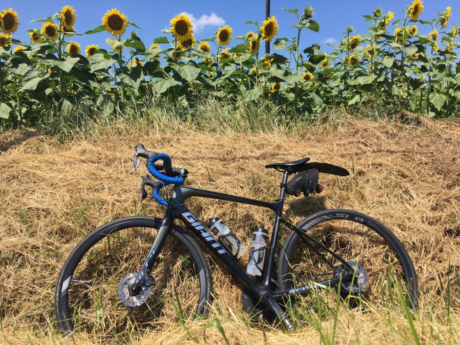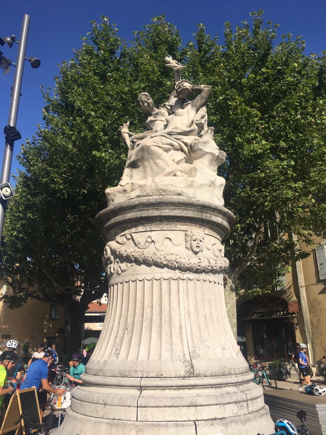 We started near Pont du Gard, but without crossing it again. Then, as ever, it was a case of rolling through to the first feedstop to regroup before setting off at our own pace. The stop was in Orange, but this time round I did not see the all the Roman remains that are to be seen there – the route did not pass by it.