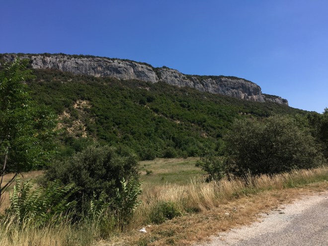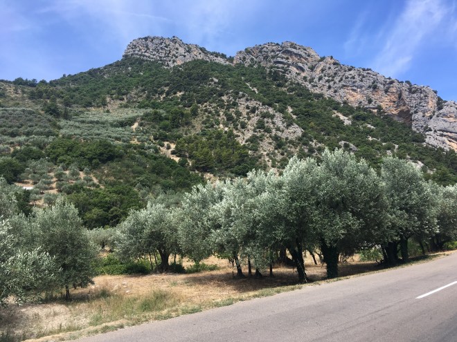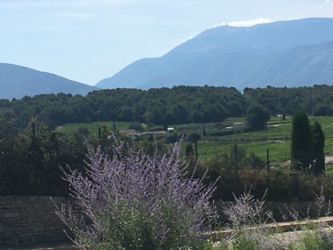 Mont Ventoux brooded over us for most of the morning as we skirted round it. The mountain seemed to be taunting us. “Why aren’t you coming up here today?” The answer’s simple – it’s not on the Tour route.
