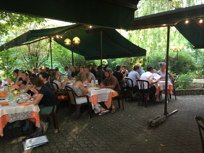 Breakfast: 05:45. Transfer: 0h30. Start time: 07:24. Distance: 206km. Terrain: hilly (2,275 metres climbing). Climbs: one Cat 3, one Cat 4. Finish: 16:54. Time in saddle: 8h01. Temp: 36C. Drinks: 6 litres.