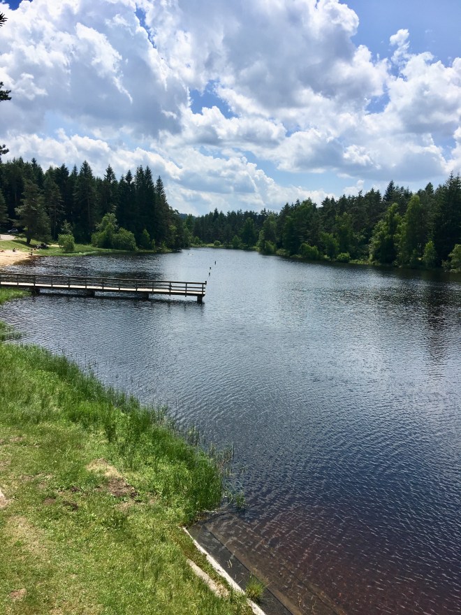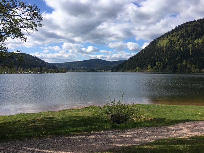 Rob and I travelled down early Thursday morning, with the others not due to arrive until late in the evening. So of course we went for a little leg-loosener in the afternoon, heading over our first col of the day (Col de Grosse Pierre, at 955m) to Gérardmer where we cycled around the small, pretty lake before heading home via a second lake and a sweeping descent back into La Bresse, which was our base for the trip. We then went shopping for the essentials but forgot the milk. Kronenbourg 1664 with your cereals anyone?