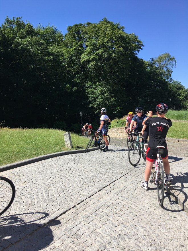 After the first feed stop we had the two cobbled climbs of the day: Muur de Geraardsbergan and the Bosberg. “Muur” means “wall”, but it wasn’t too bad.