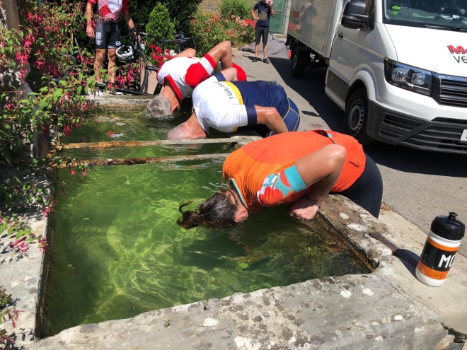 Today not as hot as Stage 1, but still too hot for Wim. Me? This is one of the stages I’ve been waiting for. Suffer score is subjective – heat and climate a factor, but possible to overlay with enjoyment of the Stage, so not feeling the effects like I might have done.