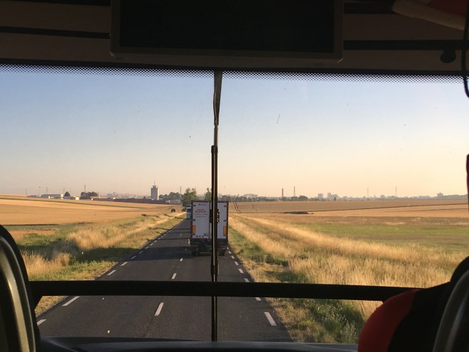 Reims appeared on the horizon from the top of the double decker coach that took us to the start point slightly outside of town. Good job we saw the cathedral yesterday then.
