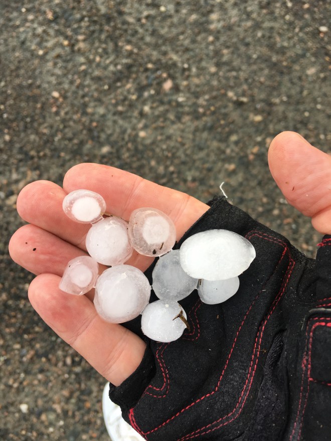 Just to pick up on where I left off yesterday with the hail. On the news this morning they were reporting from other areas in the region where hailstones the size of onions were coming down – 9cm in diameter! I think we were lucky in comparison! Despite the odd shower yesterday, this is still very much the “Sunshine Tour de France”.