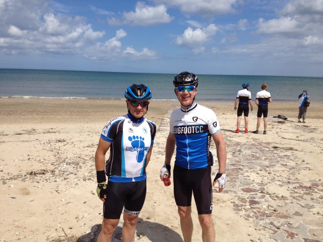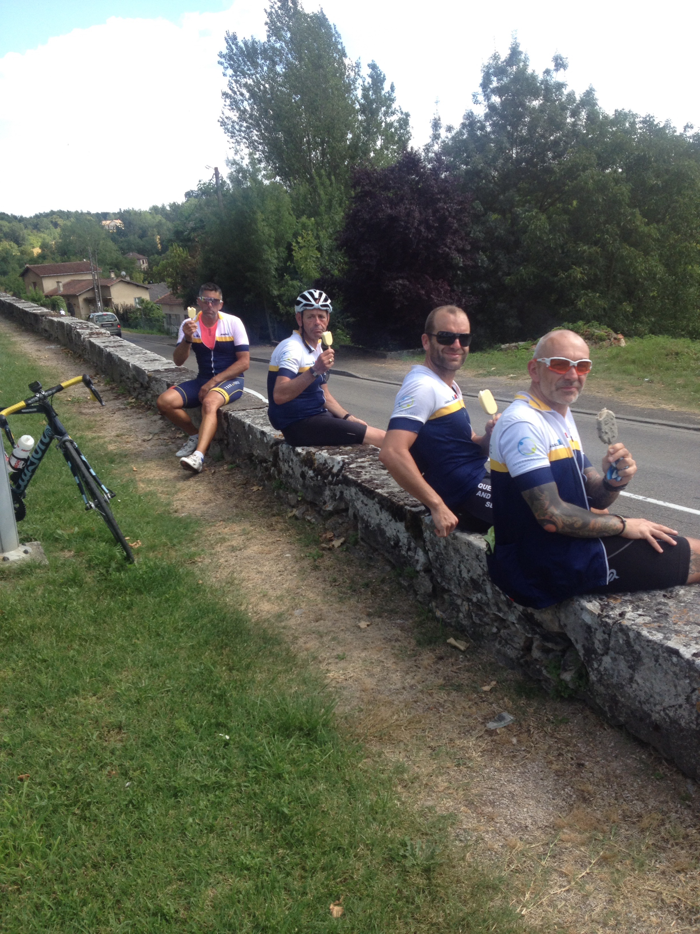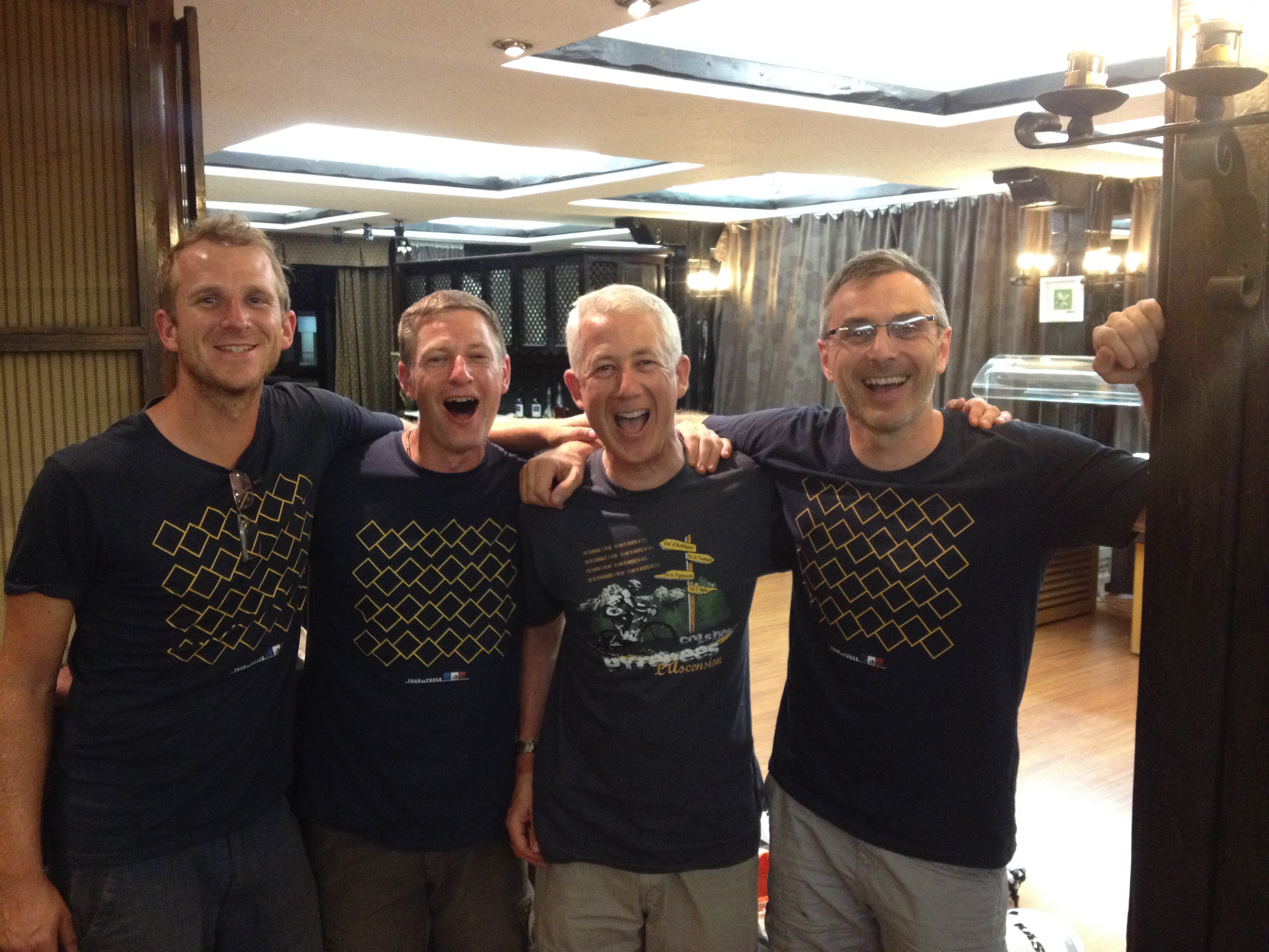 In 2016 it was great riding with some of William’s brothers and also to meet his parents who came out for the first few days. Here’s a photo of me (in my Bigfoot club kit) with Andrew, Rick and Sarah Wates, taken by a local journalist who was wondering who we were and what we were up to!